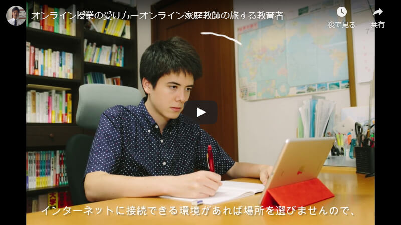 オンライン授業なので、通学時間などもなく時間を有効活用でき、海外にいて時差があっても先生に調整していただき、時差の問題なく指導が受けられました。宿題で分からない問題があっても事前にメールなどで先生に伝えておけば、個人だけが見れる動画を作っていただき、いつでも先生の指導が受けられました。そしてなによりも先生の人間性がよく、毎回の指導で自分の長所を見つけてそれを言ってくださり、私はそれで何回もやる気が出て途中であきらめることなくやりとげられました。